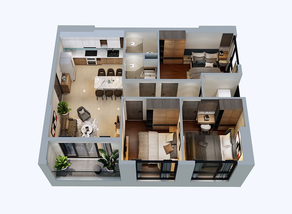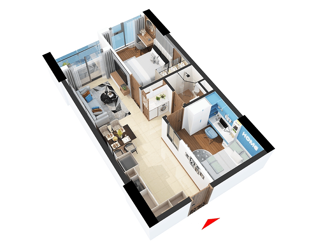 Diện tích: 54 - 63m²