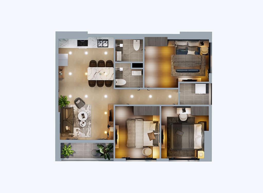 Diện tích: 76 - 78m²