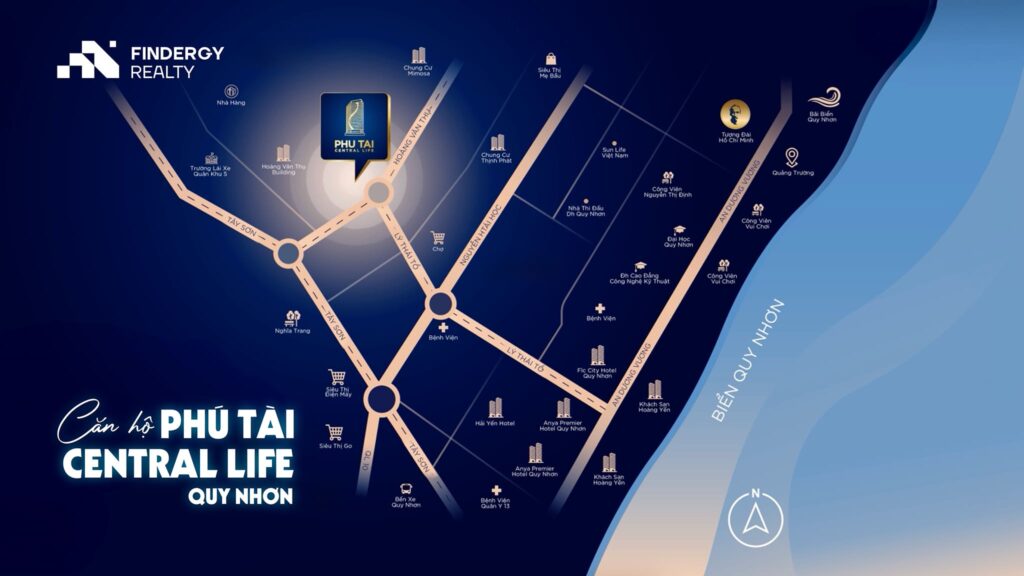 Phú Tài Central Life Quy Nhơn nằm trên đường Hoàng Văn Thụ giao nhau giữa đường Lý Thái Tổ, trung tâm Quy Nhơn. Kết nối các tiện ích nhanh chóng chỉ vài phút đi đường như: Siêu thị GO!, Bến xe, Khu trung tâm sầm uất chỉ 3 phút đi đường.
