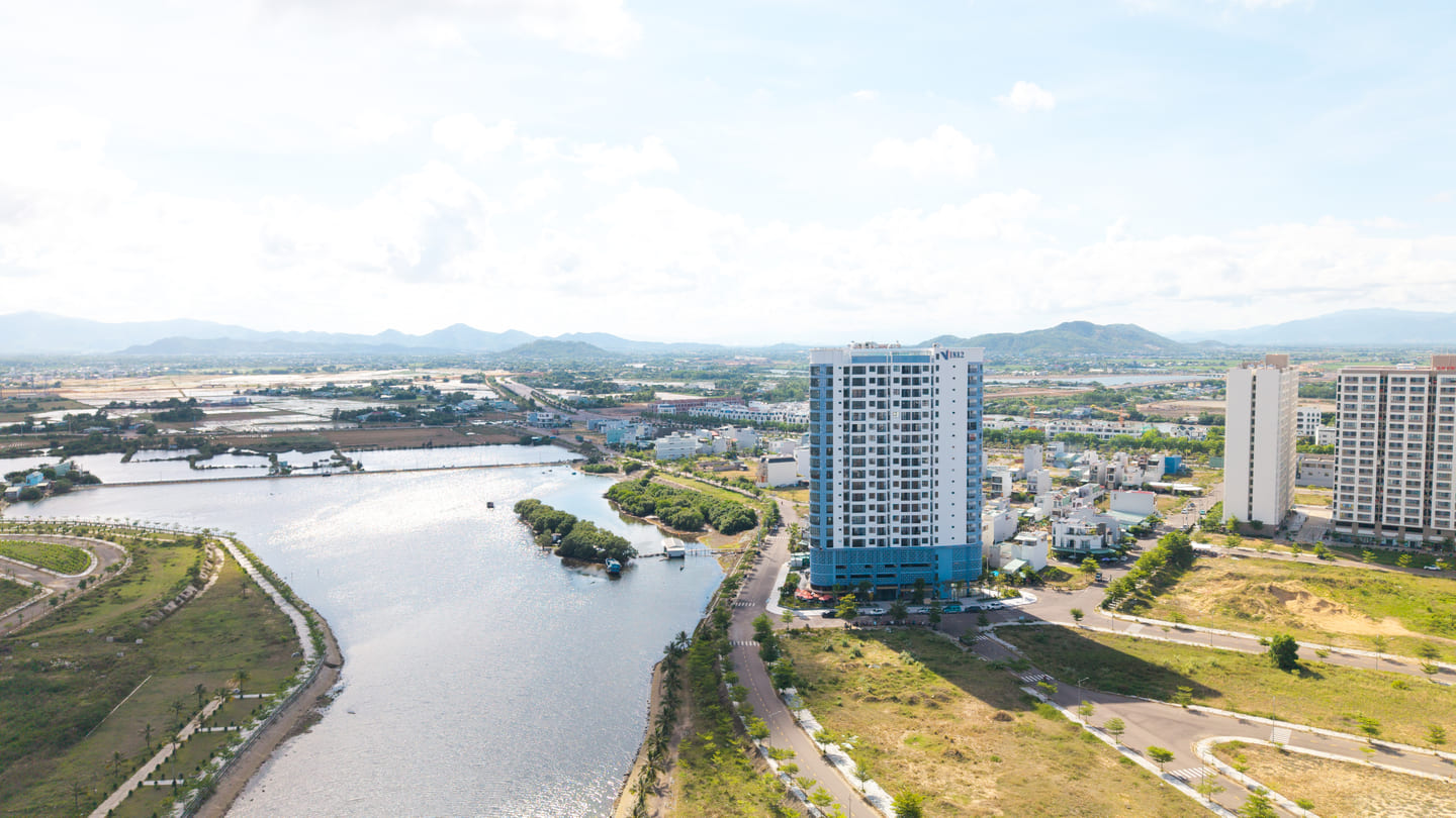 Vina2 Panorama Với 3 ưu điểm “Nhất cận thị, Nhị cận giang, Tam cận lộ”. Vina2 Panorma được bao bọc bởi sông Hà Thanh, thuộc khu tái định cư Đê Đông, Nhơn Bình, TP Quy Nhơn.